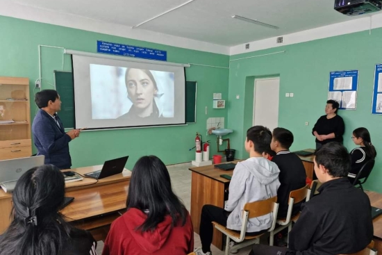 13 желтоқсан күні мектепте аға тәлімгер бейтаныс адамдармен мінез-құлық ережелері бойынша 8-11 сынып оқушыларымен әңгімелесу жүргізді