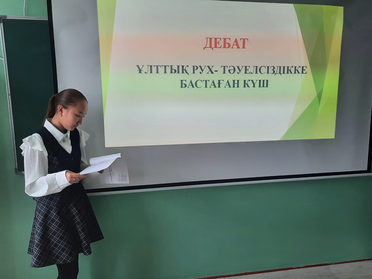 Республика күнінің қарсаңын да Қызыл - Әскер ОМ де " Ұлттық рух - Туелсіздікке бастаған күш" тақырыбын да мектеп ішілік дебат өткізілді.