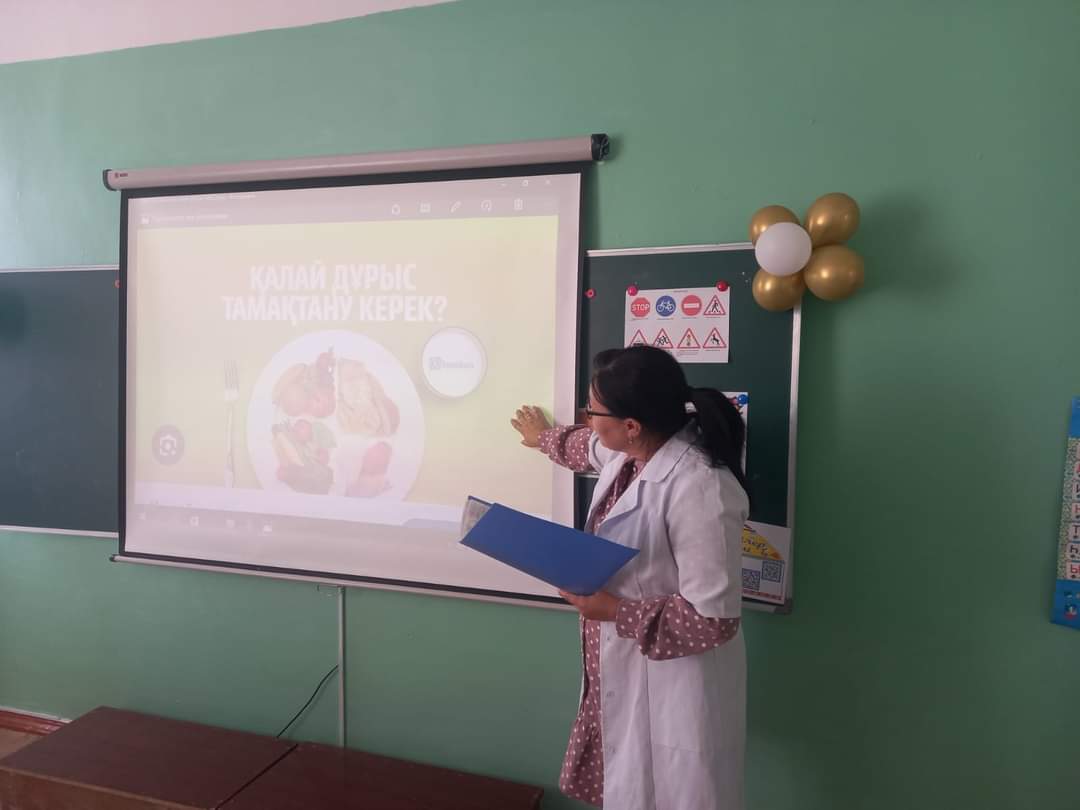 Қызыл-Әскер орта мектебі бойынша «Дұрыс тамақтану - денсаулықтың кепілі» атты тақырыпта бастауыш сынып оқушылары арасында шағын орталық медбикесі Ж.А. Валиеваның қатысуымен әңгіме жүргізілді. Әңгіме барысында оқушыларға ас - адамның арқауы, дұрыс тамақтану турлы ақпарат берілді.
